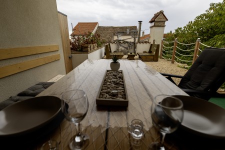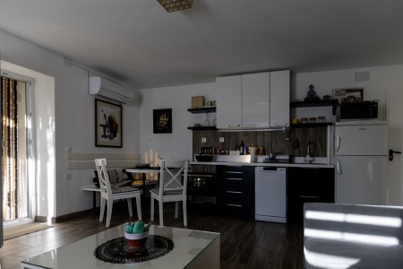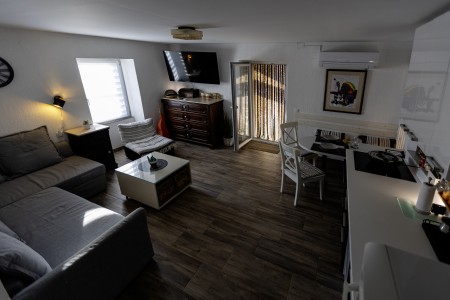 Prostoren družinski apartma z dvema spalnicama in dnevnim prostorom, ki nudi udobje za do 6 oseb. Posebnost sta dve zasebni terasi (pokrita in nepokrita), idealni za sproščanje. Apartma je sodobno opremljen, klimatiziran in ima popolnoma opremljeno kuhinjo ter vse za brezskrben oddih.