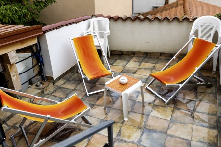 Velik in udoben apartma za večje družine ali skupine, ki sprejme do 10 oseb. Ponuja dve spalnici, prostoren dnevni prostor ter dve zasebni terasi. Klimatiziran prostor s stropnimi ventilatorji, dobro opremljena kuhinja in mirna lokacija zagotavljajo prijetno bivanje na otoku Unije.